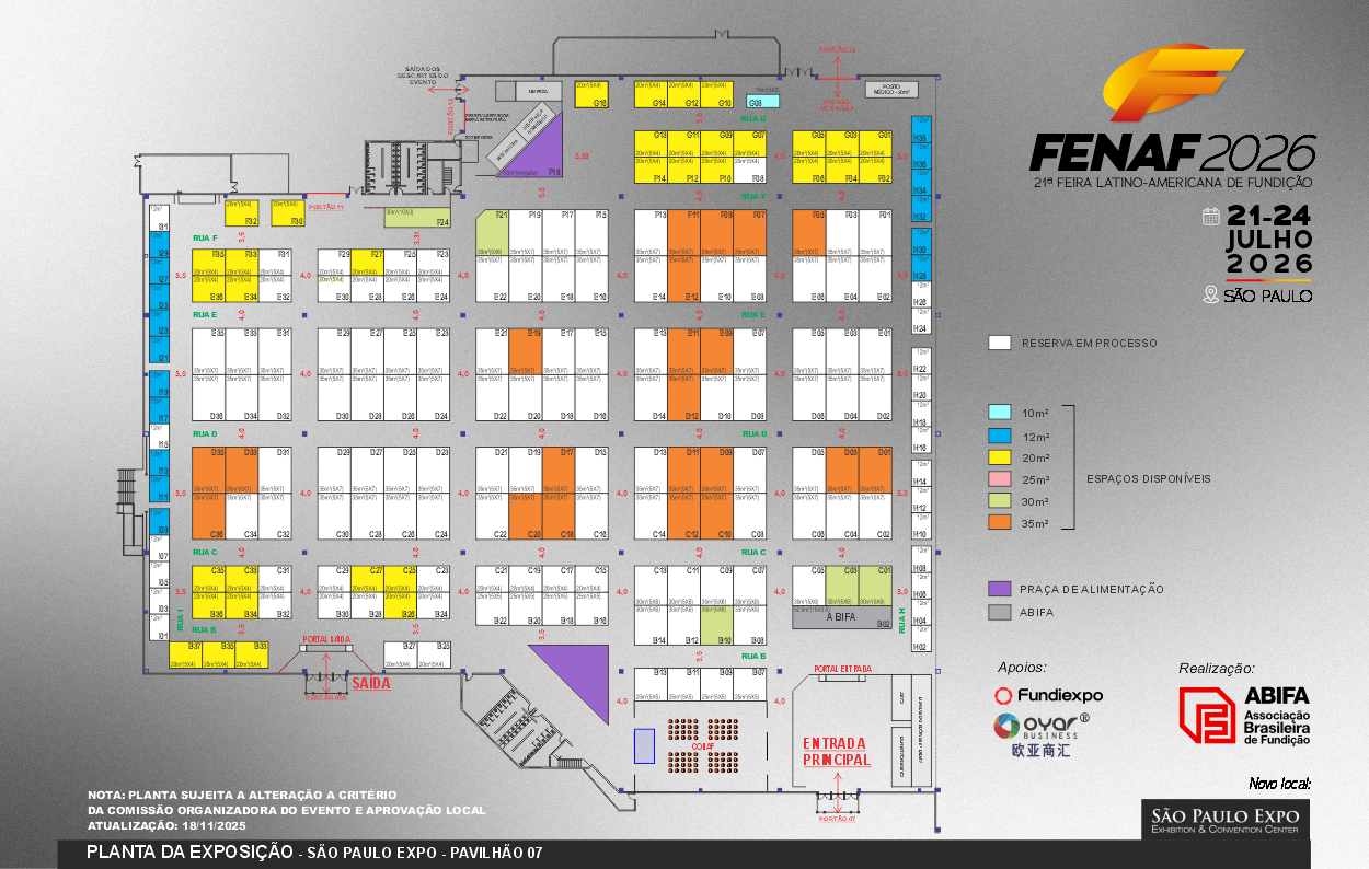 Em 2026, a cadeia de fundição volta a se reunir em São Paulo (SP), por ocasião da 21ª edição da FENAF – Feira Latino-Americana de Fundição, que acontece entre os dias 21 e 24 de julho, em um novo e mais amplo local: o São Paulo Expo, Pavilhão 7.