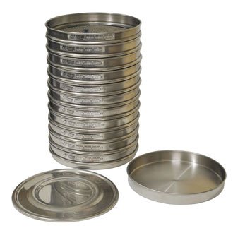 - Malhas com aberturas ABNT nº 6, 12, 20, 30, 40, 50, 70, 100, 140, 200, 270, tampa e fundo